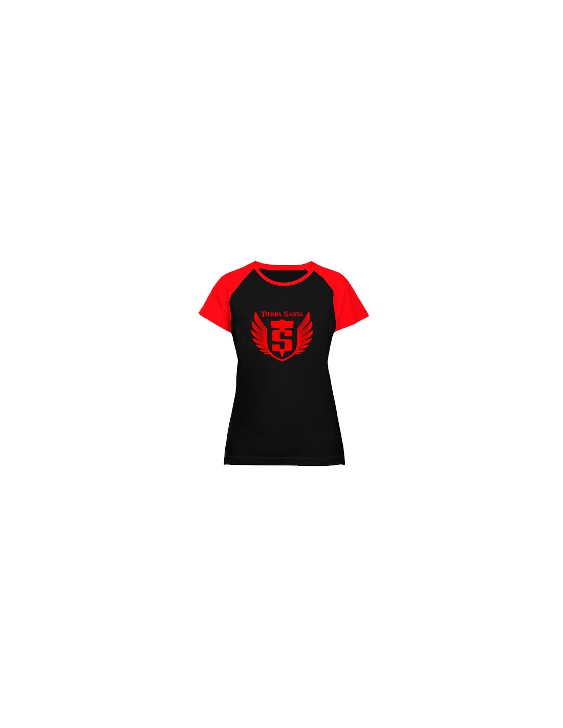- CAMISETA CHICA RANGLAN, NEGRA MANGAS ROJAS - Medidas aproximadas en cm
